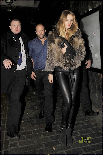 Rosie Huntington-Whiteley with boyfriend Jason Statham leave The Box nightclub in London